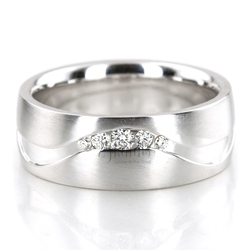 Uniquely artistic yet timeless design! This diamond wedding ring set showcases a striking wave design cut that elegantly flows around the entire band, symbolizing harmony and everlasting love. The satin-finished surface enhances the contemporary look, creating a refined contrast with the polished wave accents. The lady’s band is adorned with five round-cut diamonds, totaling 0.10ct, set along the curve to add a subtle yet captivating sparkle. The men’s band mirrors the graceful wave pattern, offering a perfect balance of sophistication and modern craftsmanship.