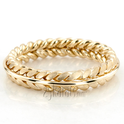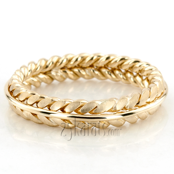 Elegant! This 5mm wide handmade wedding ring set consists of two braids and a thin center piece. Braids are cross-satin finish, and the center is high polished. The intertwining design symbolizes unity and the strength.
