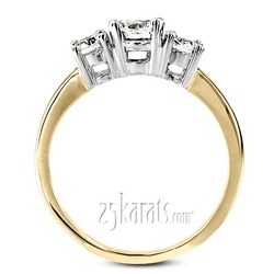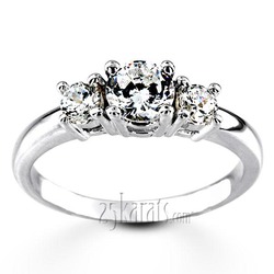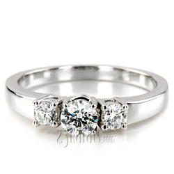 You can never go wrong with this classic style three stone engagement ring. It is true symbol of the past, the present and the future. Hand selected brilliant diamonds set in to this ring. This classic three stone ring features 0.50ct. tw. GH SI diamonds. Side diamonds are 0.10ct each. Center diamond is 0.30ct.
