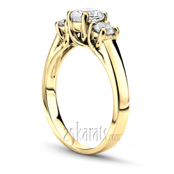This gorgeous three stone diamond engagement ring is set with 2 round cut diamonds totaling 5 mm GH-VS and center is set with 0.50 ct.tw round cut moissanite. This diamond and moissanite engagement ring is available in white gold, yellow gold and platinum.