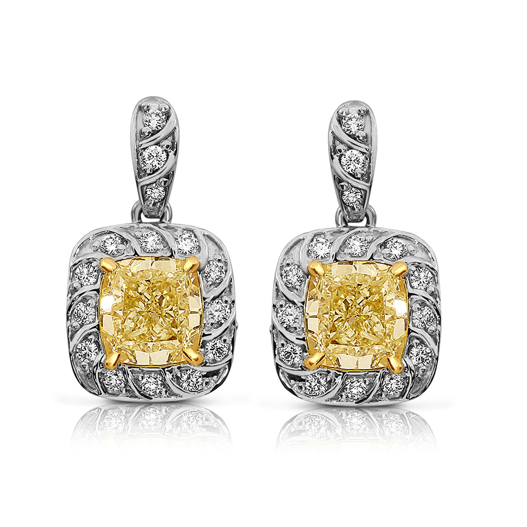 4.06ct. Cushion Shape Yellow Diamond Earring