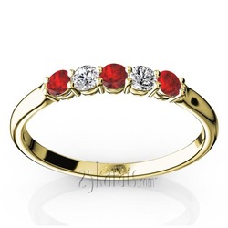 Suave! This fashionable Ruby & Diamond Alternating Anniversary band is set with 5 round cut stones in shared prong fashion. Yellow gold ring is finished with white settings. 3 ruby ~0.21 tcw. This beautiful ring is available in 14k, 18k, platinum and palladium.