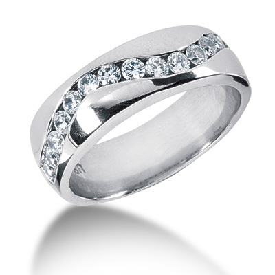 This exceptional style curve channel set diamond men ring is set with 15 round cut diamonds totaling 0.90 ct.tw. This men's diamond wedding band is available in white gold, yellow gold and platinum..