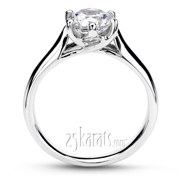 Elegant and classic appeal! This gorgeous six prong set diamond engagement ring can be set with 0.40 ct.-1.80 ct. round diamond range. This perfect solitaire diamond engagement ring is available in white gold, yellow gold and platinum..