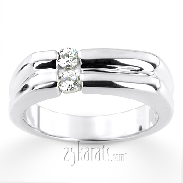 This ring symbolizes balance of mind and heart! This dazzling 0.30 ct.tw. diamond ring is channel set with two round diamonds. This men ring is available in white gold, yellow gold and platinum..