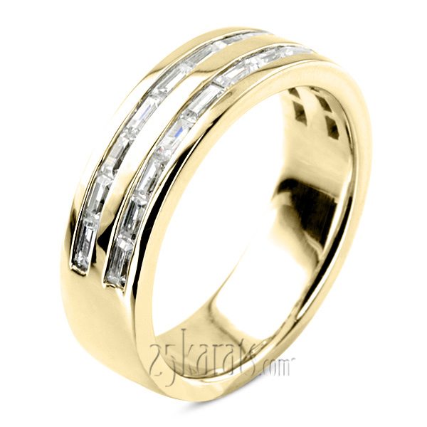 This stylish 1.32 ct. t.w. double row diamond ring is channel set with 22 straight baguette diamonds. This fancy man ring is available in 14K gold, 18K gold and platinum..