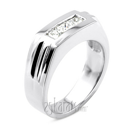 This spectacular diamond man wedding ring features 3 princess cut diamonds in channel setting totaling 0.60 ct.tw. This ring is available in white gold, yellow gold and platinum..