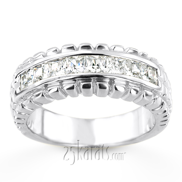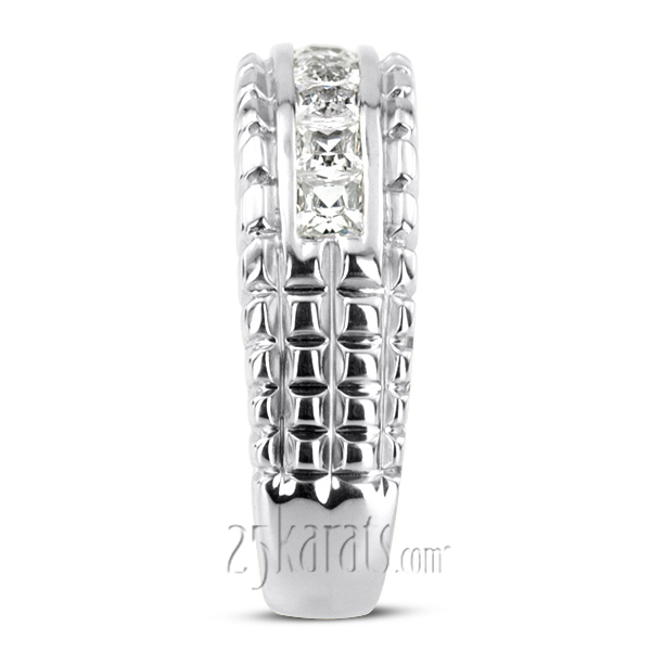 Stunning! This luxurious diamond men ring is channel set with 8 princess cut diamonds totaling 1.36 ct.tw. This man wedding ring is available in white gold, yellow gold and platinum..