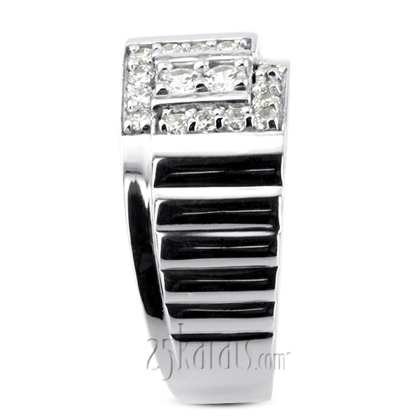 Skillfully crafted, this diamond men ring has a watch-like design to complete your style. It's finished with 16 round cut diamonds, total 0.62ct. This man wedding ring is available in white gold, yellow gold and platinum..