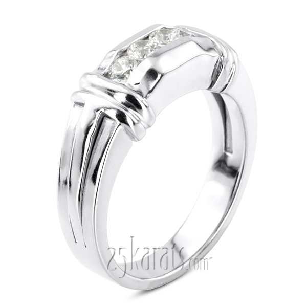Makes you stand out! This diamond men ring has a bar design with 4 round cut diamonds in a channel setting. Each diamond is 0.10ct., with total 0.40ct.tw. This ring is available in white gold, yellow gold and platinum..