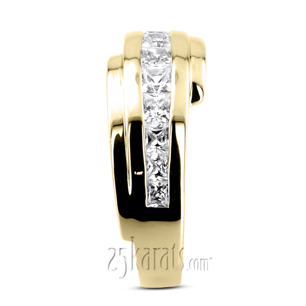 Exquisite! This exceptional men's diamond ring is finished with 11 princess cut diamonds, totaling 1.56ct. This men wedding band is available in white gold, yellow gold or platinum.