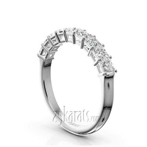 Low basket setting shared prong traditional anniversary band. This classic woman diamond ring features 3/4 ct. tw. princess diamonds. This anniversary band is available in 14K, 18K and platinum.