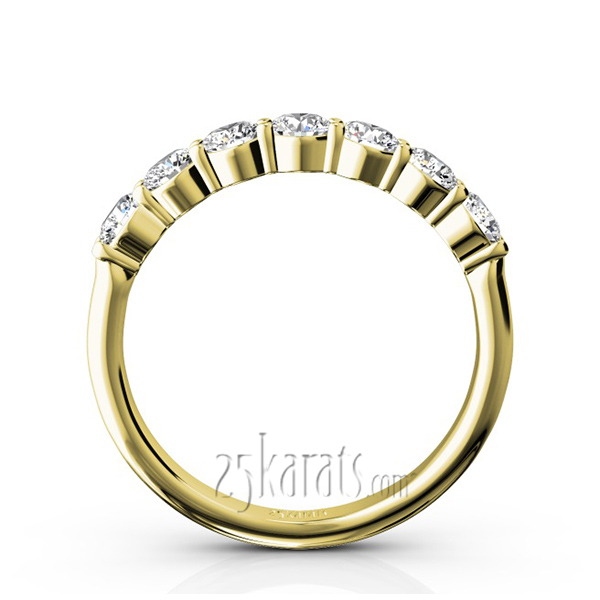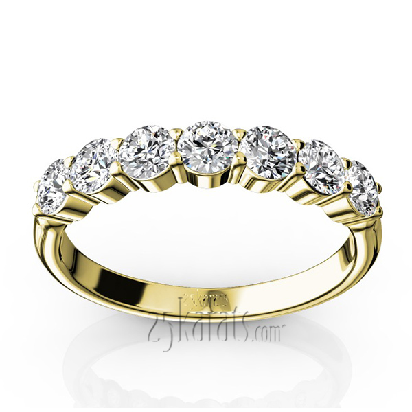 Re-creation of a classic band, this seven stone traditional anniversary ring is improved with comfort fit. This women ring is set with round brilliant diamonds totaling 3/4 ct. tw. This diamond wedding band is available in 14K and 18K gold or platinum.