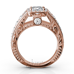 Captivating engraved design and a wide shank meet in this intriguing halo engagement ring. This ring will help make your most important day a celebration with dazzling 1.05 ct. tw side stones. Your choice of center stone will brilliantly shine on this setting. Available in 14k, 18k gold and platinum..