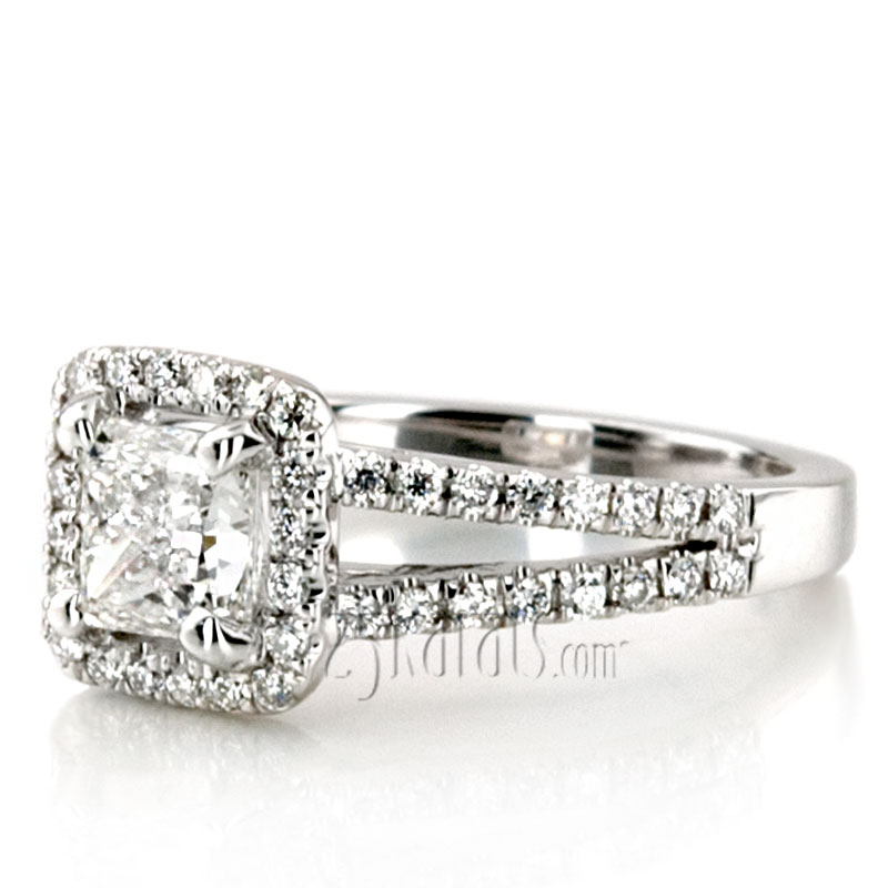 A remarkable split shank engagement ring! This ring is finished with 1/2 ct. t.w dazzling side diamonds to steal her hart once again. All diamonds are micro pave set to perfection. This ring is available in 14k, 18k gold and platinum..