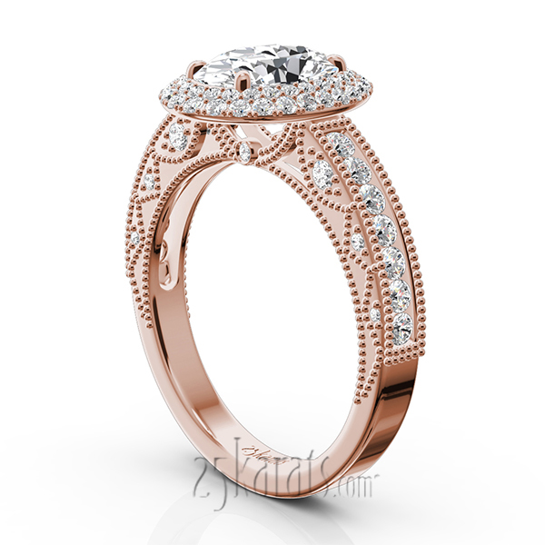 Excellent choice for oval center stone lovers! Simply select this antique design engagement ring and your oval center diamond, and leave the rest to us. This halo engagement ring features 3/4 ct. t.w. diamonds. This ring is available in 14k, 18k gold and platinum..