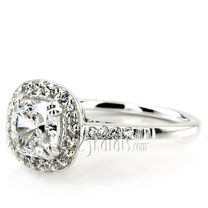Micro Pave Cushion Halo Antique Inspired Engagement Ring (1/5 ct. tw.)