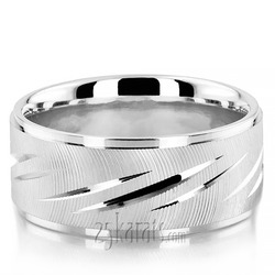 A classic favorite, this 6mm wide Carved Design wedding ring has one wide and two narrow cuts evenly spaced all around. This band is also available in 5, 7, 8, 9, 10mm.
