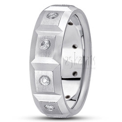 Gorgeous! This 7mm wide Diamond wedding band has round shaped diamonds with a burnish setting. The ring is set with 10 Round Cut Diamonds. Each diamond weighs 0.05ct, which is a total of 0.5ct. The diamonds are graded G in color and SI1 in clarity. Center of the band is satin finished. Each side and cut is high polished.