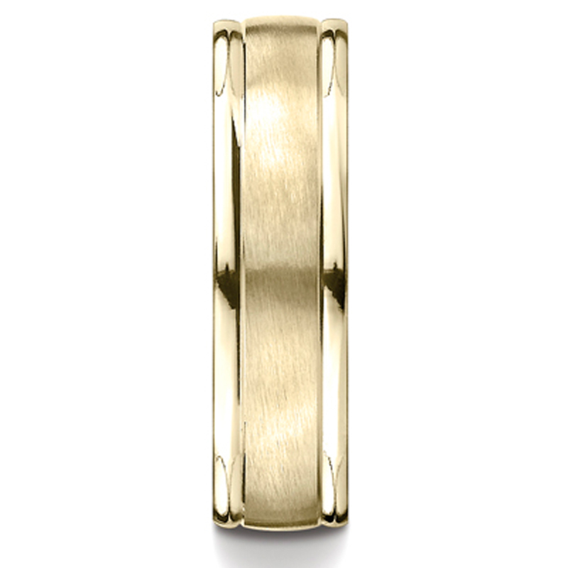 This 6mm Benchmark comfort-fit carved design band features a wired-finished with a high polished round edge for noticeable style.
