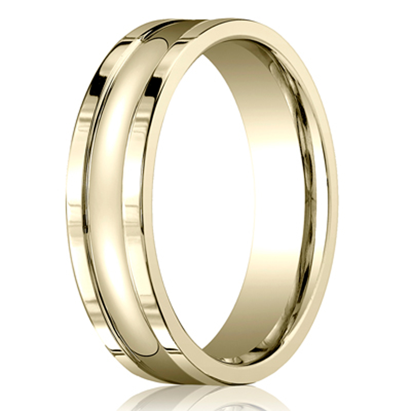 This 6mm Benchmark comfort-fit carved design band features a high polished finish and squared edge.