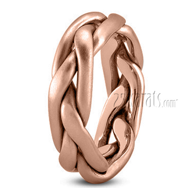 Exquisitely handwoven, this 6.5 mm wide handcrafted wedding band showcases a timeless braid design. The band features a satin finish, adding a touch of elegance to its classic look. With a thickness of 2.2mm, this ring is both stylish and substantial, perfect for a lasting symbol of your love.