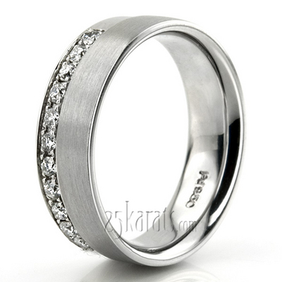 Elegant and stylish! This 6mm wide Diamond Wedding Band is set with 11 Round Cut Diamonds. Each diamond weighs 0.02ct, total 0.22ct. The diamonds are graded G in color and SI1 in clarity. The body of the is satin finished. Step-edge is high polished.