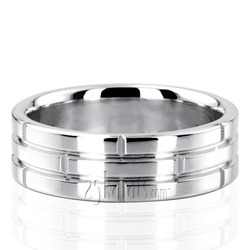 An exquisite ring that blends modernity with a classic style. This 7mm wide Diamond Cut wedding band has deep cuts that create a Rolex design. Band is satin finished.